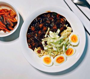 Mì Chinnoo, gà, nấm kim châm, kim chi, bắp cải tím, bông cải xanh.